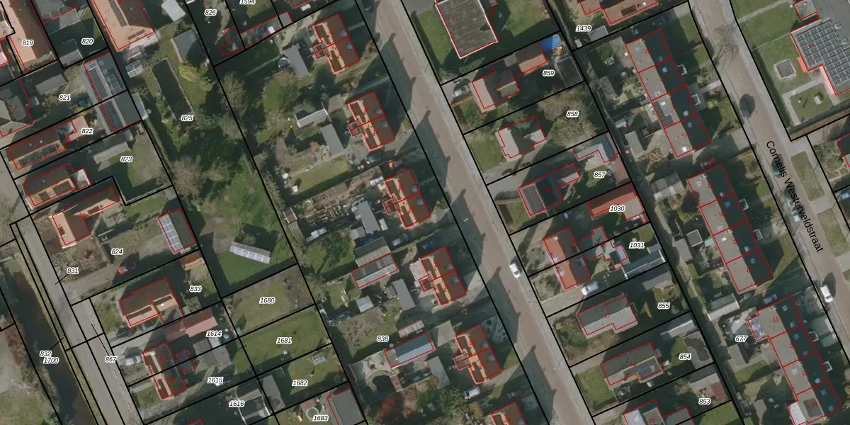 Het perceel waarop Mulderstraat 14 staat heeft een oppervlakte van 4530 m². Dit is een zeer groot perceel. De perceeloppervlakte wordt geregistreerd door het Kadaster. Gedetailleerde informatie over de maten van dit perceel kunt u vinden in het rapport Kadastrale kaart met maatvoering van Mulderstraat 14.
