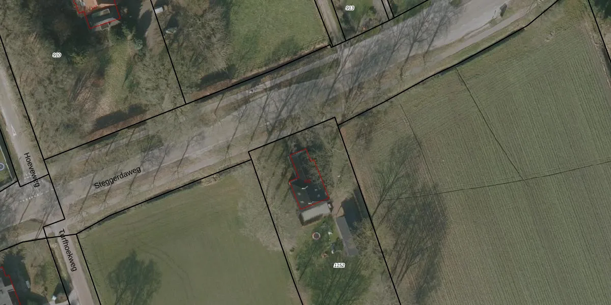 Het perceel waarop Steggerdaweg 102 staat heeft een oppervlakte van 2430 m². Dit is een zeer groot perceel. De perceeloppervlakte wordt geregistreerd door het Kadaster. Gedetailleerde informatie over de maten van dit perceel kunt u vinden in het rapport Kadastrale kaart met maatvoering van Steggerdaweg 102.