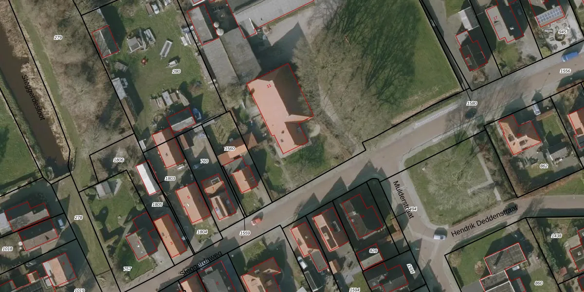 Het perceel waarop Steggerdaweg 11 staat heeft een oppervlakte van 1,1 ha. Dit is een zeer groot perceel. De perceeloppervlakte wordt geregistreerd door het Kadaster. Gedetailleerde informatie over de maten van dit perceel kunt u vinden in het rapport Kadastrale kaart met maatvoering van Steggerdaweg 11.
