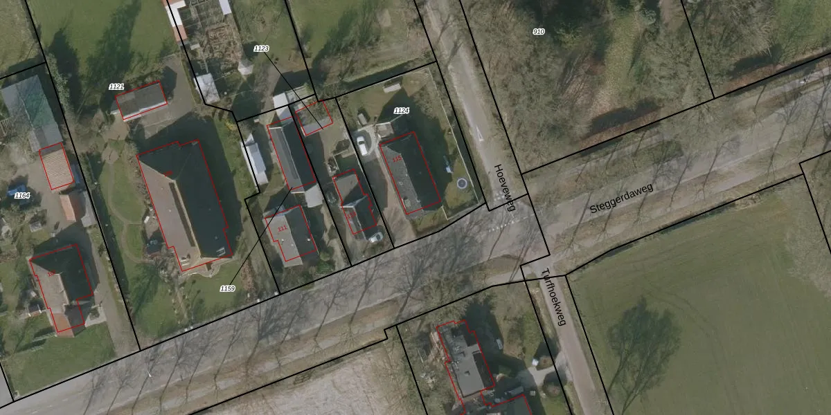 Het perceel waarop Steggerdaweg 115 staat heeft een oppervlakte van 945 m². Dit is een groot perceel. De perceeloppervlakte wordt geregistreerd door het Kadaster. Gedetailleerde informatie over de maten van dit perceel kunt u vinden in het rapport Kadastrale kaart met maatvoering van Steggerdaweg 115.