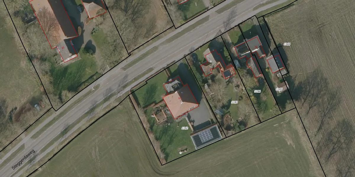 Het perceel waarop Steggerdaweg 70 staat heeft een oppervlakte van 1835 m². Dit is een zeer groot perceel. De perceeloppervlakte wordt geregistreerd door het Kadaster. Gedetailleerde informatie over de maten van dit perceel kunt u vinden in het rapport Kadastrale kaart met maatvoering van Steggerdaweg 70.