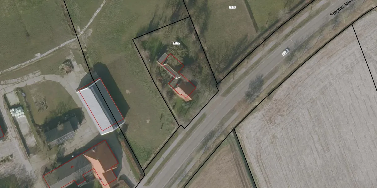 Het perceel waarop Steggerdaweg 97 staat heeft een oppervlakte van 1475 m². Dit is een zeer groot perceel. De perceeloppervlakte wordt geregistreerd door het Kadaster. Gedetailleerde informatie over de maten van dit perceel kunt u vinden in het rapport Kadastrale kaart met maatvoering van Steggerdaweg 97.