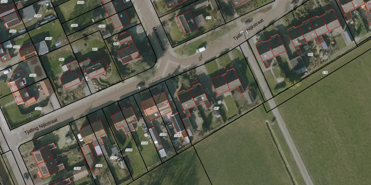 Het perceel waarop Tjalling Nijkstraat 14 staat heeft een oppervlakte van 1565 m². Dit is een zeer groot perceel. De perceeloppervlakte wordt geregistreerd door het Kadaster. Gedetailleerde informatie over de maten van dit perceel kunt u vinden in het rapport Kadastrale kaart met maatvoering van Tjalling Nijkstraat 14.