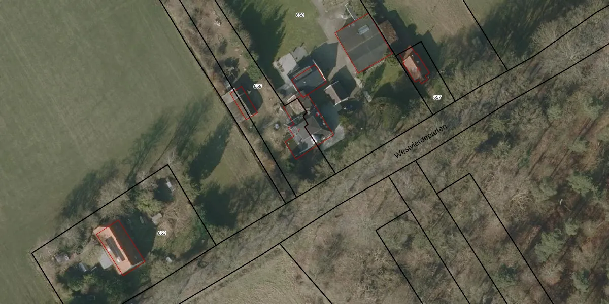Het perceel waarop Westvierdeparten 7 staat heeft een oppervlakte van 920 m². Dit is een groot perceel. De perceeloppervlakte wordt geregistreerd door het Kadaster. Gedetailleerde informatie over de maten van dit perceel kunt u vinden in het rapport Kadastrale kaart met maatvoering van Westvierdeparten 7.
