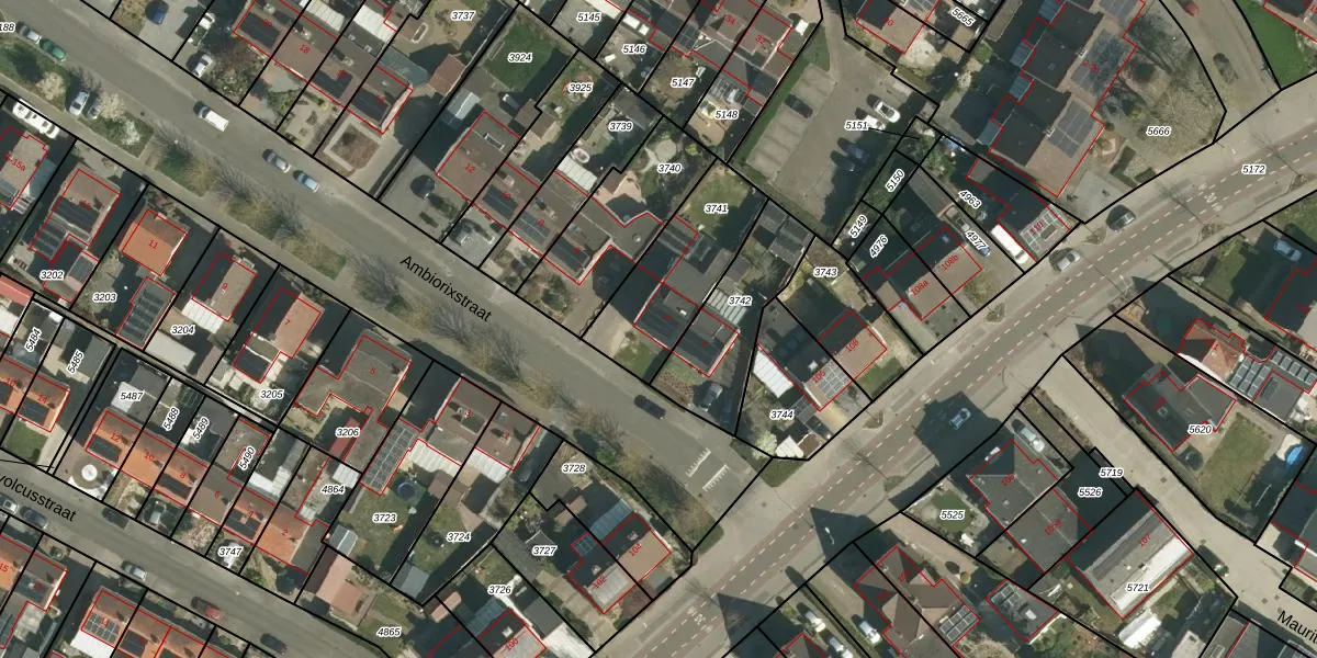 Het perceel waarop Ambiorixstraat 4 staat heeft een oppervlakte van 402 m². Dit is een groot perceel. De perceeloppervlakte wordt geregistreerd door het Kadaster. Gedetailleerde informatie over de maten van dit perceel kunt u vinden in het rapport Kadastrale kaart met maatvoering van Ambiorixstraat 4.