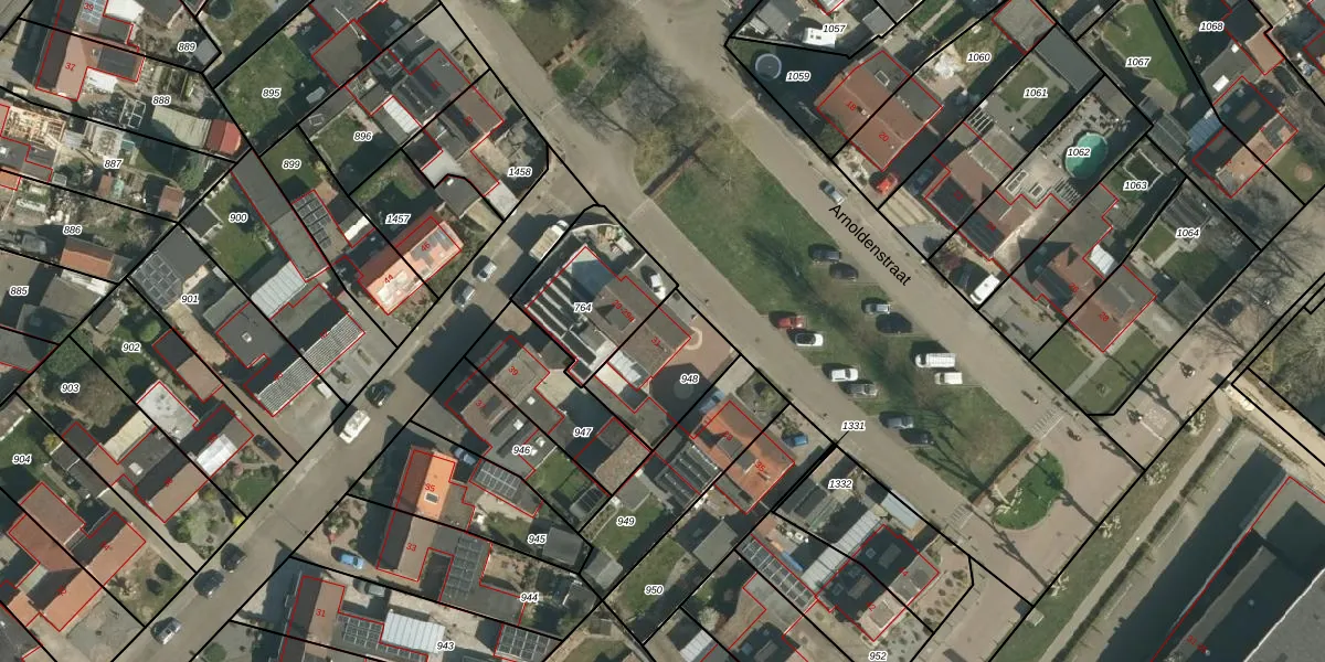 Gebruik de zoekbalk of klik op een perceel voor informatie over de adressen binnen dit perceel.