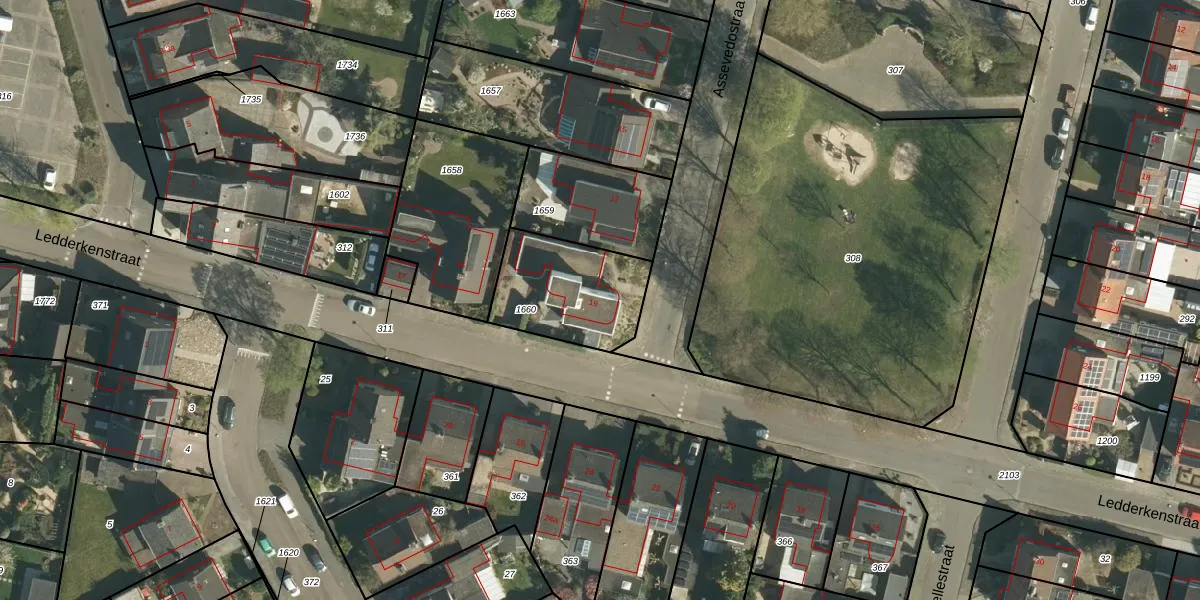 Het perceel waarop Assevedostraat 19 staat heeft een oppervlakte van 394 m². Dit is een groot perceel. De perceeloppervlakte wordt geregistreerd door het Kadaster. Gedetailleerde informatie over de maten van dit perceel kunt u vinden in het rapport Kadastrale kaart met maatvoering van Assevedostraat 19.