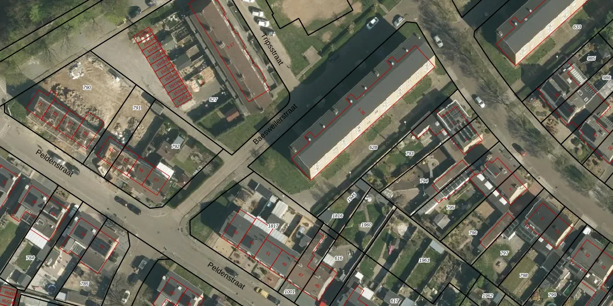 Het perceel waarop Baesweilerstraat 1 staat heeft een oppervlakte van 1840 m². Dit is een zeer groot perceel. De perceeloppervlakte wordt geregistreerd door het Kadaster. Gedetailleerde informatie over de maten van dit perceel kunt u vinden in het rapport Kadastrale kaart met maatvoering van Baesweilerstraat 1.