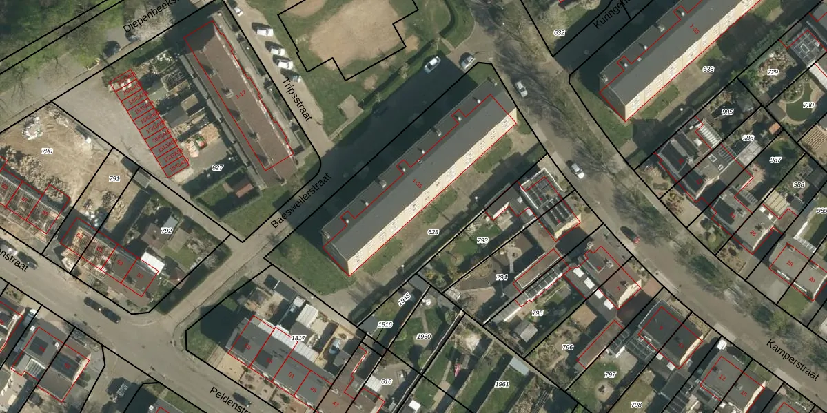 Het perceel waarop Baesweilerstraat 1-GA03 staat heeft een oppervlakte van 1840 m². Dit is een zeer groot perceel. De perceeloppervlakte wordt geregistreerd door het Kadaster. Gedetailleerde informatie over de maten van dit perceel kunt u vinden in het rapport Kadastrale kaart met maatvoering van Baesweilerstraat 1-GA03.