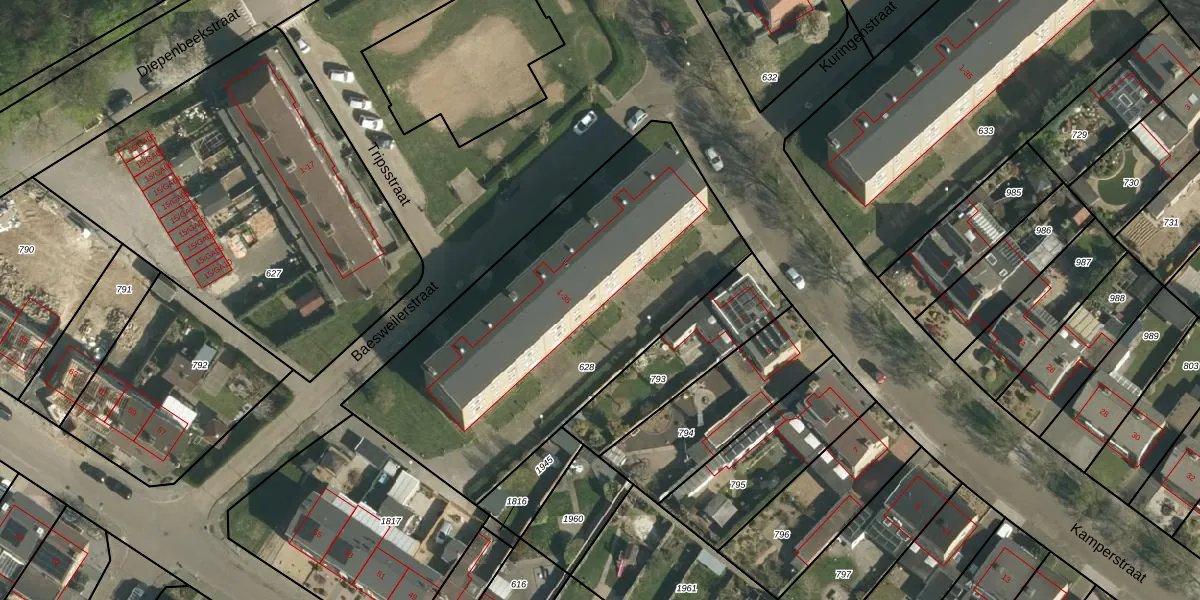 Het perceel waarop Baesweilerstraat 23 staat heeft een oppervlakte van 1840 m². Dit is een zeer groot perceel. De perceeloppervlakte wordt geregistreerd door het Kadaster. Gedetailleerde informatie over de maten van dit perceel kunt u vinden in het rapport Kadastrale kaart met maatvoering van Baesweilerstraat 23.