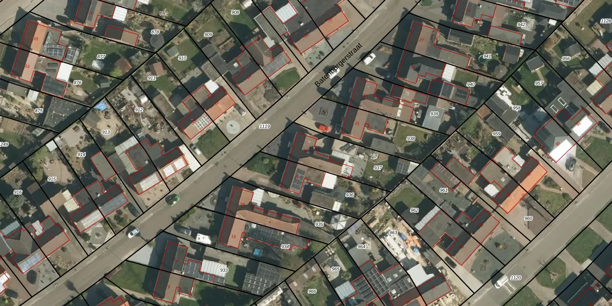 Het perceel waarop Batenburgerstraat 19 staat heeft een oppervlakte van 519 m². Dit is een groot perceel. De perceeloppervlakte wordt geregistreerd door het Kadaster. Gedetailleerde informatie over de maten van dit perceel kunt u vinden in het rapport Kadastrale kaart met maatvoering van Batenburgerstraat 19.