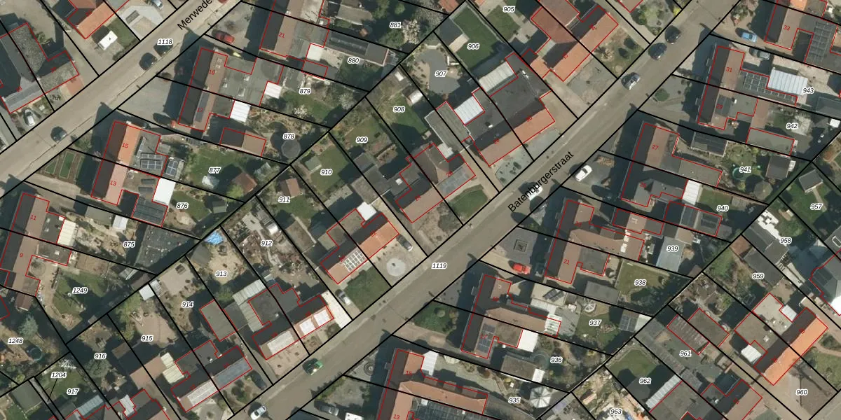 Het perceel waarop Batenburgerstraat 24 staat heeft een oppervlakte van 452 m². Dit is een groot perceel. De perceeloppervlakte wordt geregistreerd door het Kadaster. Gedetailleerde informatie over de maten van dit perceel kunt u vinden in het rapport Kadastrale kaart met maatvoering van Batenburgerstraat 24.