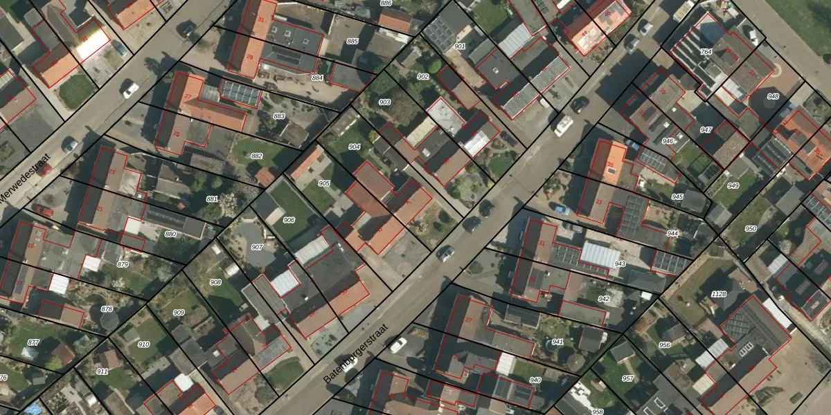 Het perceel waarop Batenburgerstraat 34 staat heeft een oppervlakte van 458 m². Dit is een groot perceel. De perceeloppervlakte wordt geregistreerd door het Kadaster. Gedetailleerde informatie over de maten van dit perceel kunt u vinden in het rapport Kadastrale kaart met maatvoering van Batenburgerstraat 34.