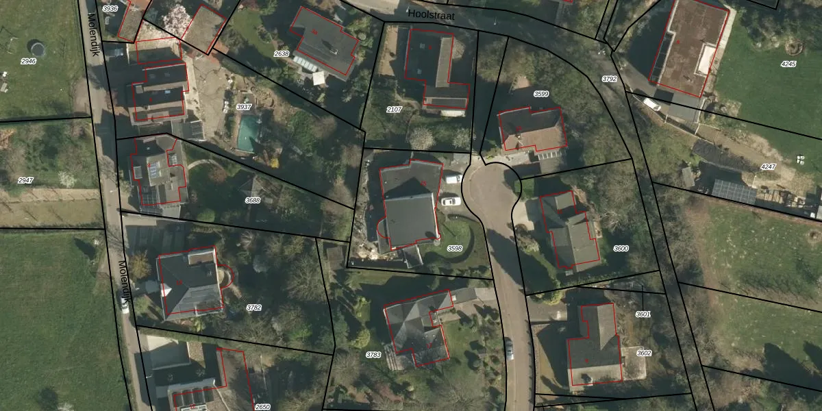 Gebruik de zoekbalk of klik op een perceel voor informatie over de adressen binnen dit perceel.