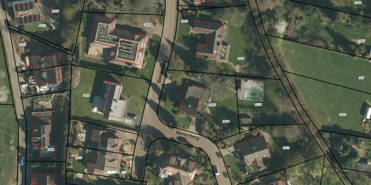 Gebruik de zoekbalk of klik op een perceel voor informatie over de adressen binnen dit perceel.