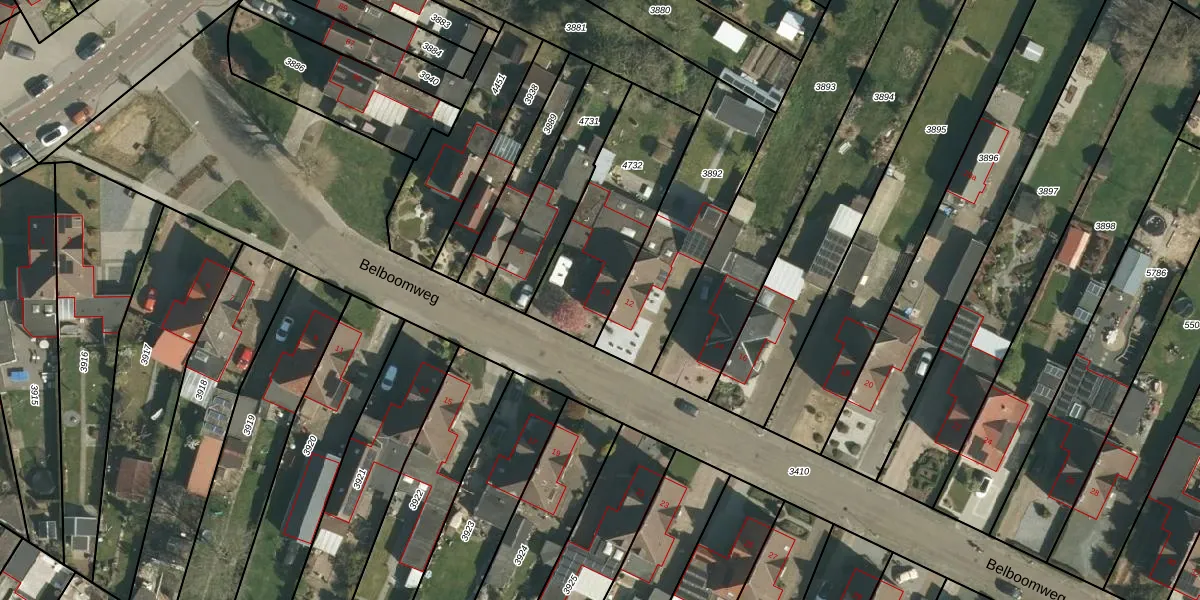 Het perceel waarop Belboomweg 10 staat heeft een oppervlakte van 537 m². Dit is een groot perceel. De perceeloppervlakte wordt geregistreerd door het Kadaster. Gedetailleerde informatie over de maten van dit perceel kunt u vinden in het rapport Kadastrale kaart met maatvoering van Belboomweg 10.