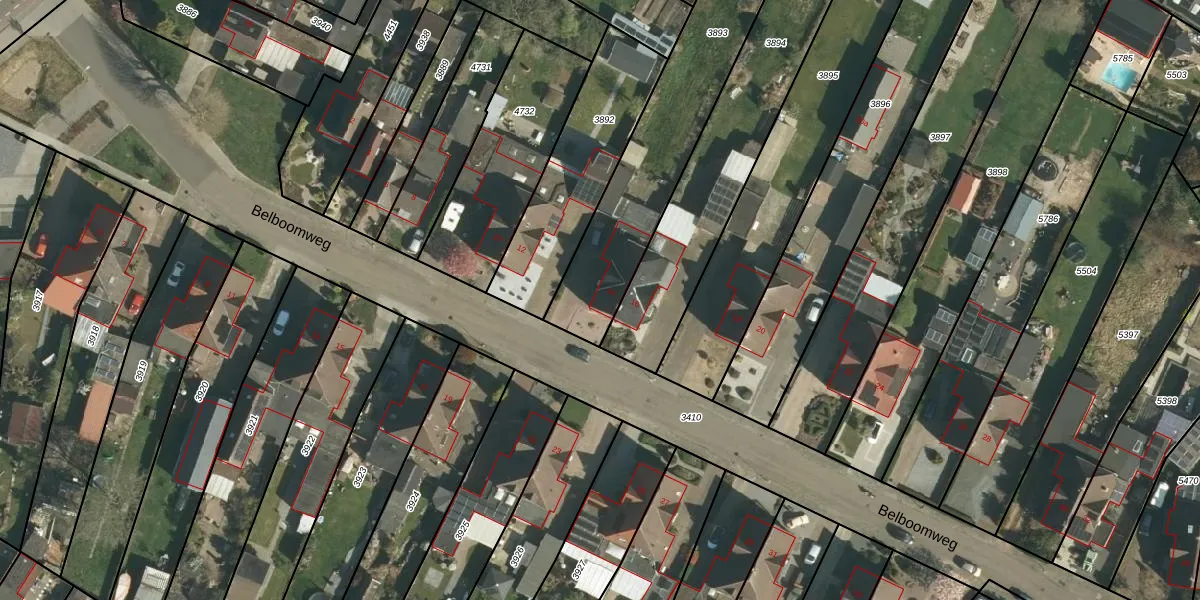 Belboomweg 14 is gelegen op kadastraal perceel STE00B3893. Deze kadastrale aanduiding is uniek en wordt gebruikt door het Kadaster om eigendomsrechten en andere zakelijke rechten vast te leggen. Het perceel maakt onderdeel uit van de kadastrale gemeente Stein.