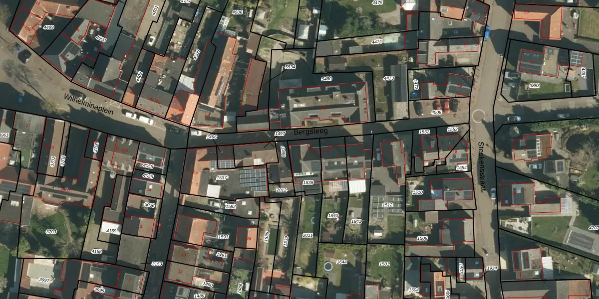 Gebruik de zoekbalk of klik op een perceel voor informatie over de adressen binnen dit perceel.