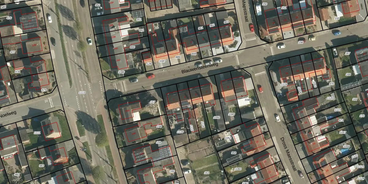 Het perceel waarop Blauwensteenweg 3 staat heeft een oppervlakte van 198 m². Dit is een middelgroot perceel. De perceeloppervlakte wordt geregistreerd door het Kadaster. Gedetailleerde informatie over de maten van dit perceel kunt u vinden in het rapport Kadastrale kaart met maatvoering van Blauwensteenweg 3.