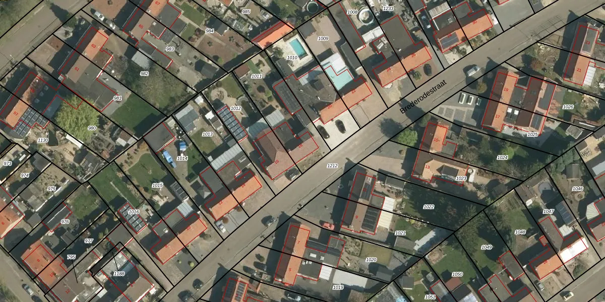 Brederodestraat 18 is gelegen op kadastraal perceel STE00F1011. Deze kadastrale aanduiding is uniek en wordt gebruikt door het Kadaster om eigendomsrechten en andere zakelijke rechten vast te leggen. Het perceel maakt onderdeel uit van de kadastrale gemeente Stein.