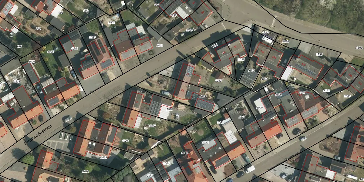 Brederodestraat 25 is gelegen op kadastraal perceel STE00F1029. Deze kadastrale aanduiding is uniek en wordt gebruikt door het Kadaster om eigendomsrechten en andere zakelijke rechten vast te leggen. Het perceel maakt onderdeel uit van de kadastrale gemeente Stein.