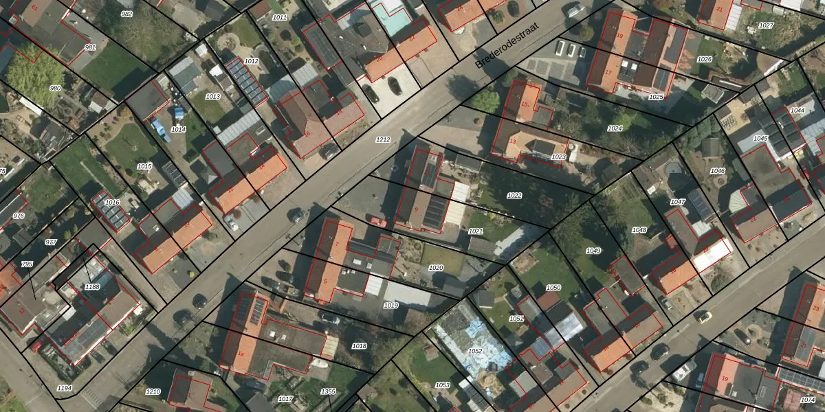 Brederodestraat 9 is gelegen op kadastraal perceel STE00F1021. Deze kadastrale aanduiding is uniek en wordt gebruikt door het Kadaster om eigendomsrechten en andere zakelijke rechten vast te leggen. Het perceel maakt onderdeel uit van de kadastrale gemeente Stein.
