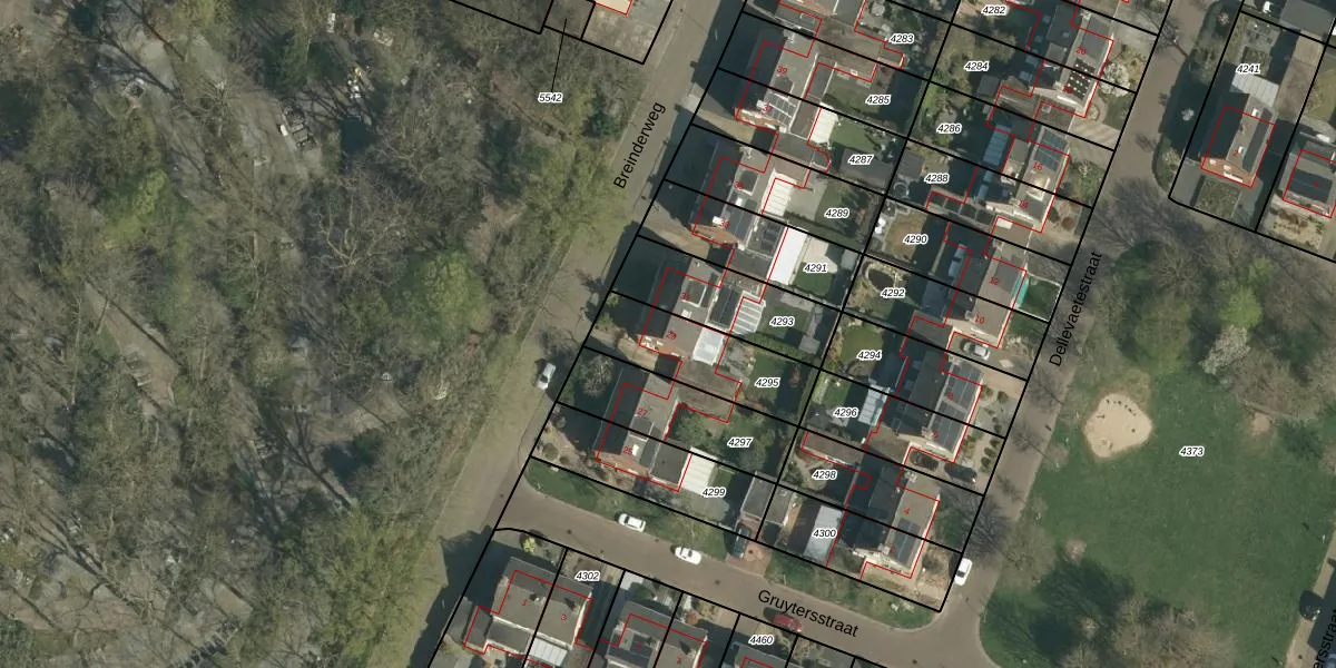 Het perceel waarop Breinderweg 29 staat heeft een oppervlakte van 314 m². Dit is een groot perceel. De perceeloppervlakte wordt geregistreerd door het Kadaster. Gedetailleerde informatie over de maten van dit perceel kunt u vinden in het rapport Kadastrale kaart met maatvoering van Breinderweg 29.