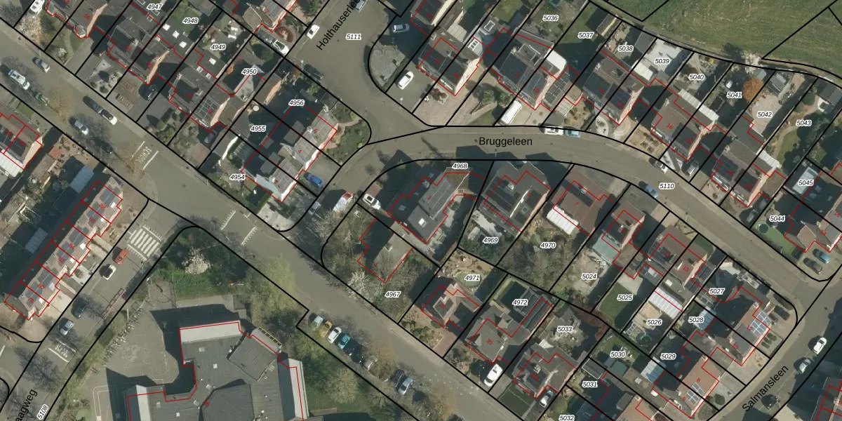 Het perceel waarop Bruggeleen 3 staat heeft een oppervlakte van 490 m². Dit is een groot perceel. De perceeloppervlakte wordt geregistreerd door het Kadaster. Gedetailleerde informatie over de maten van dit perceel kunt u vinden in het rapport Kadastrale kaart met maatvoering van Bruggeleen 3.