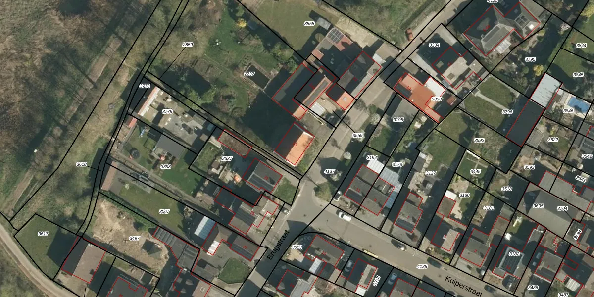 Het perceel waarop Brugstraat 13 staat heeft een oppervlakte van 1960 m². Dit is een zeer groot perceel. De perceeloppervlakte wordt geregistreerd door het Kadaster. Gedetailleerde informatie over de maten van dit perceel kunt u vinden in het rapport Kadastrale kaart met maatvoering van Brugstraat 13.