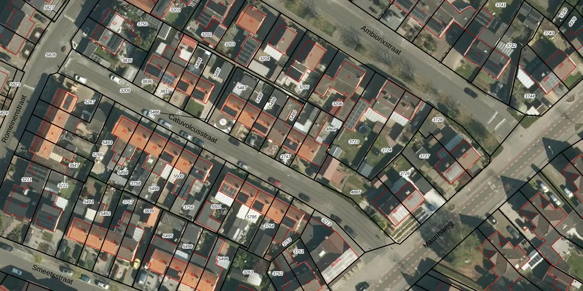 Het perceel waarop Catuvolcusstraat 4 staat heeft een oppervlakte van 136 m². Dit is een middelgroot perceel. De perceeloppervlakte wordt geregistreerd door het Kadaster. Gedetailleerde informatie over de maten van dit perceel kunt u vinden in het rapport Kadastrale kaart met maatvoering van Catuvolcusstraat 4.