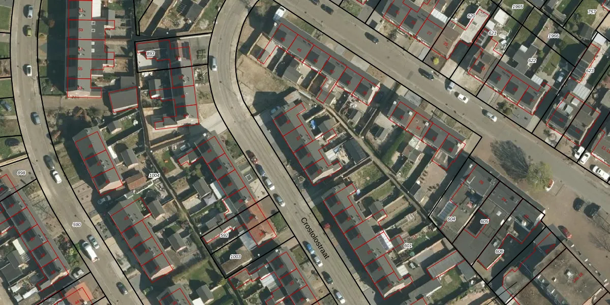 Het perceel waarop Crostolostraat 35 staat heeft een oppervlakte van 6610 m². Dit is een zeer groot perceel. De perceeloppervlakte wordt geregistreerd door het Kadaster. Gedetailleerde informatie over de maten van dit perceel kunt u vinden in het rapport Kadastrale kaart met maatvoering van Crostolostraat 35.