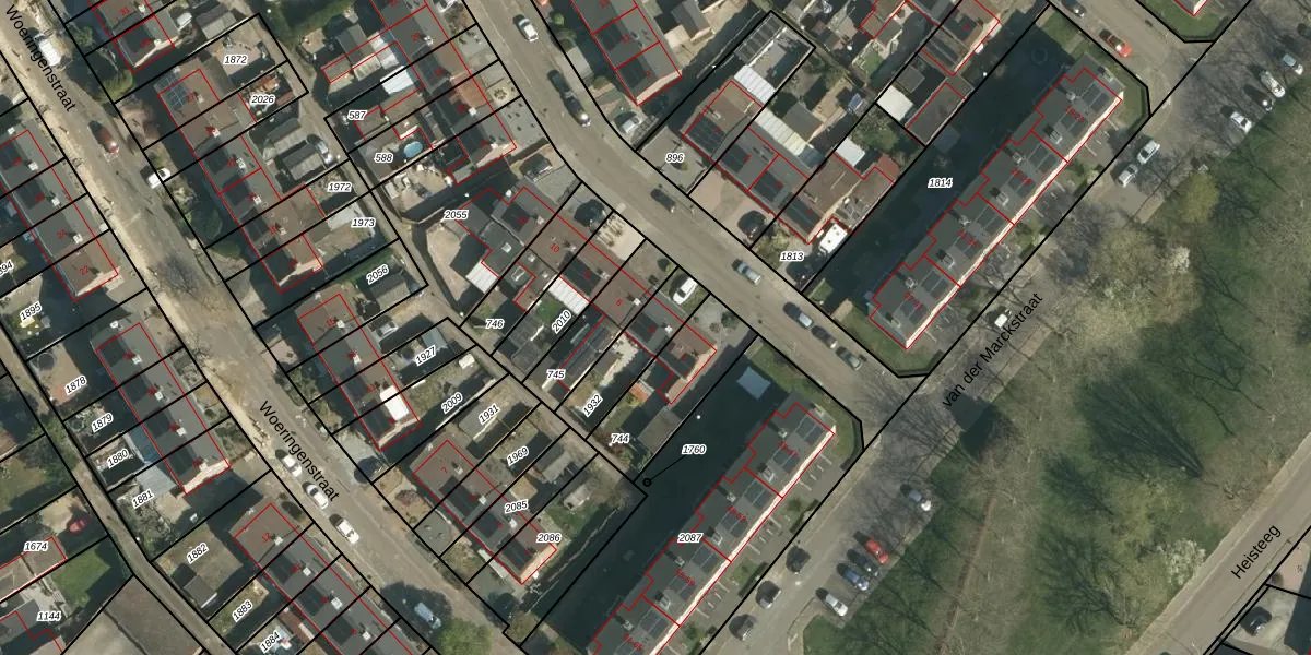 Gebruik de zoekbalk of klik op een perceel voor informatie over de adressen binnen dit perceel.