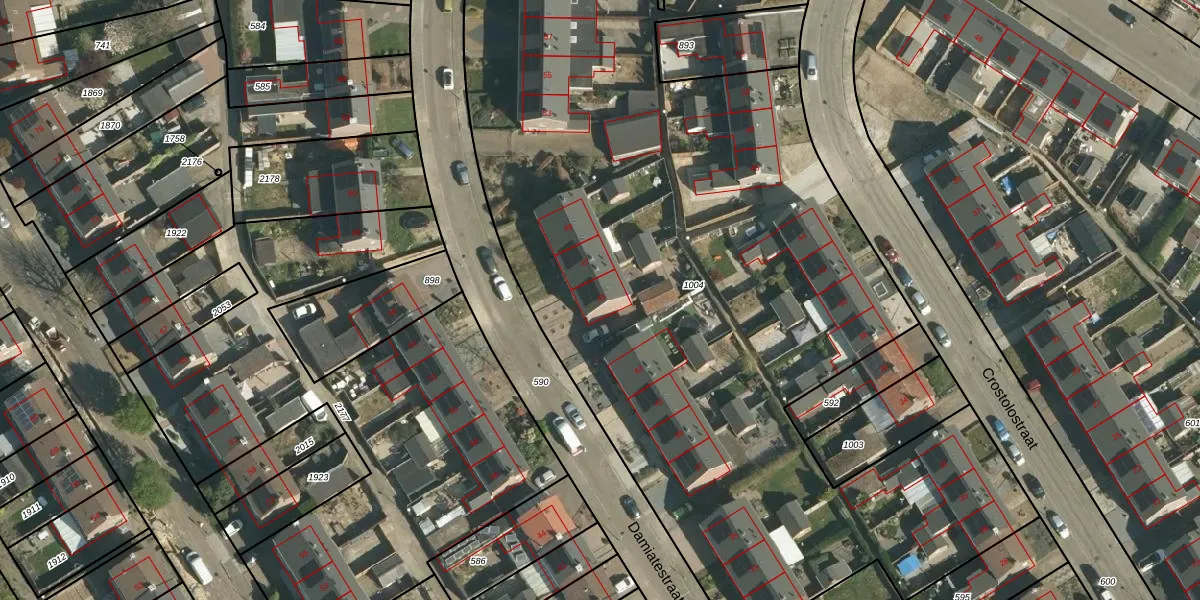 Het perceel waarop Damiatestraat 45 staat heeft een oppervlakte van 7122 m². Dit is een zeer groot perceel. De perceeloppervlakte wordt geregistreerd door het Kadaster. Gedetailleerde informatie over de maten van dit perceel kunt u vinden in het rapport Kadastrale kaart met maatvoering van Damiatestraat 45.