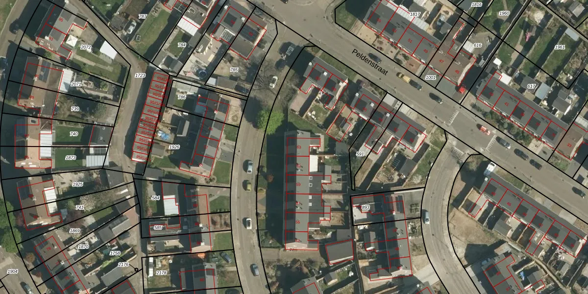 Het perceel waarop Damiatestraat 63 staat heeft een oppervlakte van 7122 m². Dit is een zeer groot perceel. De perceeloppervlakte wordt geregistreerd door het Kadaster. Gedetailleerde informatie over de maten van dit perceel kunt u vinden in het rapport Kadastrale kaart met maatvoering van Damiatestraat 63.