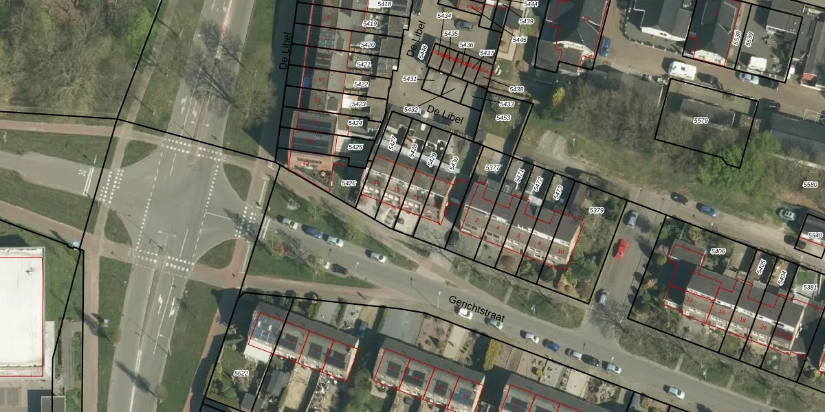 Gebruik de zoekbalk of klik op een perceel voor informatie over de adressen binnen dit perceel.