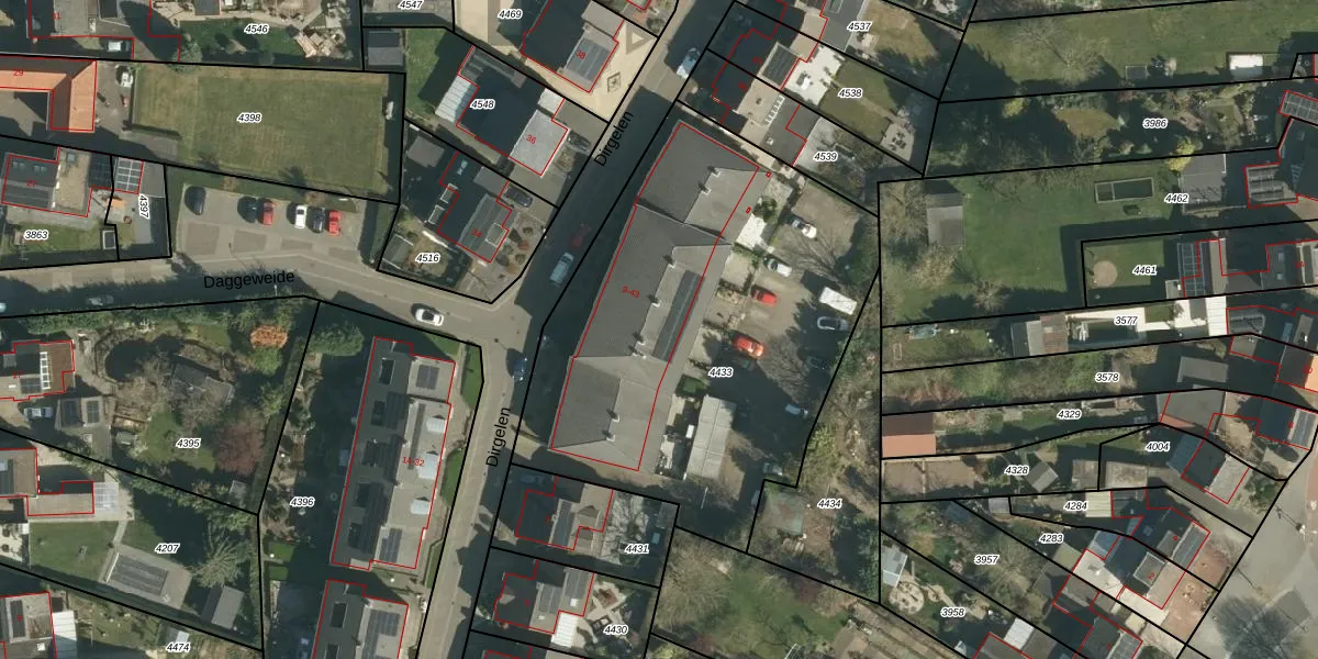 Dirgelen 39 is gelegen op kadastraal perceel STE00C4433. Deze kadastrale aanduiding is uniek en wordt gebruikt door het Kadaster om eigendomsrechten en andere zakelijke rechten vast te leggen. Het perceel maakt onderdeel uit van de kadastrale gemeente Stein.