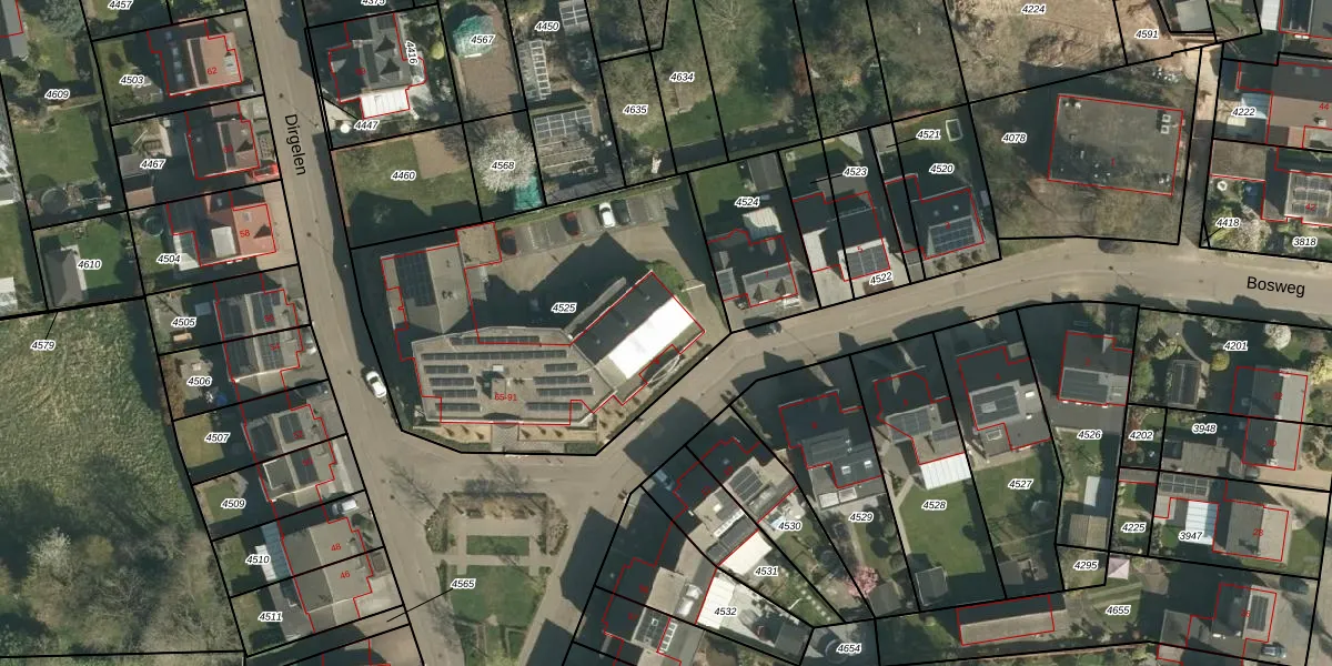 Het perceel waarop Dirgelen 65 staat heeft een oppervlakte van 1713 m². Dit is een zeer groot perceel. De perceeloppervlakte wordt geregistreerd door het Kadaster. Gedetailleerde informatie over de maten van dit perceel kunt u vinden in het rapport Kadastrale kaart met maatvoering van Dirgelen 65.