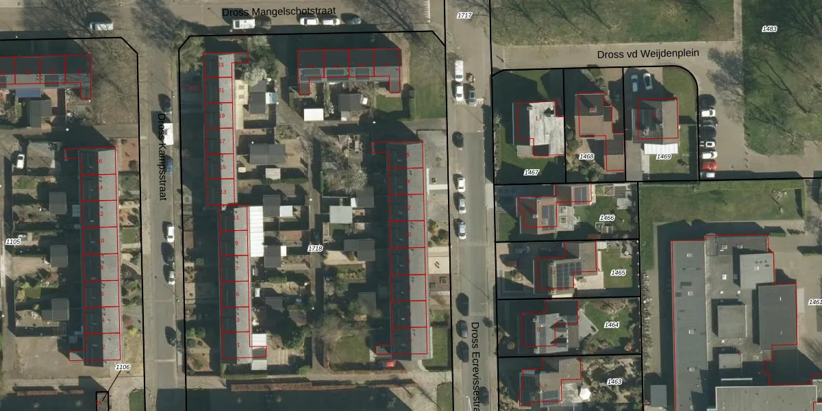 Dross Ecrevissestraat 12 is gelegen op kadastraal perceel STE00G1718. Deze kadastrale aanduiding is uniek en wordt gebruikt door het Kadaster om eigendomsrechten en andere zakelijke rechten vast te leggen. Het perceel maakt onderdeel uit van de kadastrale gemeente Stein.