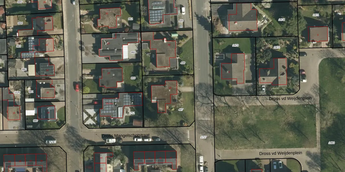 Het perceel waarop Dross Ecrevissestraat 18 staat heeft een oppervlakte van 895 m². Dit is een groot perceel. De perceeloppervlakte wordt geregistreerd door het Kadaster. Gedetailleerde informatie over de maten van dit perceel kunt u vinden in het rapport Kadastrale kaart met maatvoering van Dross Ecrevissestraat 18.