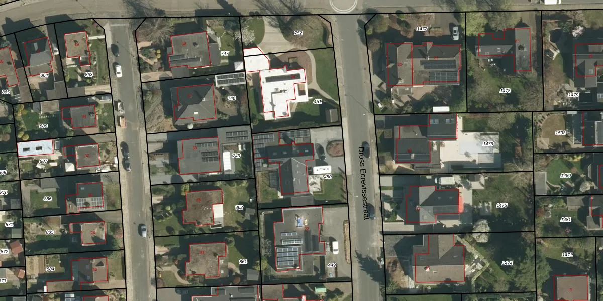 Het perceel waarop Dross Ecrevissestraat 24 staat heeft een oppervlakte van 768 m². Dit is een groot perceel. De perceeloppervlakte wordt geregistreerd door het Kadaster. Gedetailleerde informatie over de maten van dit perceel kunt u vinden in het rapport Kadastrale kaart met maatvoering van Dross Ecrevissestraat 24.