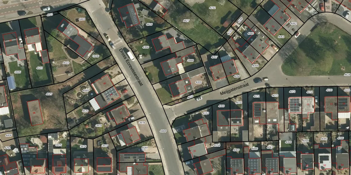 Het perceel waarop Dross Ecrevissestraat 29 staat heeft een oppervlakte van 400 m². Dit is een groot perceel. De perceeloppervlakte wordt geregistreerd door het Kadaster. Gedetailleerde informatie over de maten van dit perceel kunt u vinden in het rapport Kadastrale kaart met maatvoering van Dross Ecrevissestraat 29.