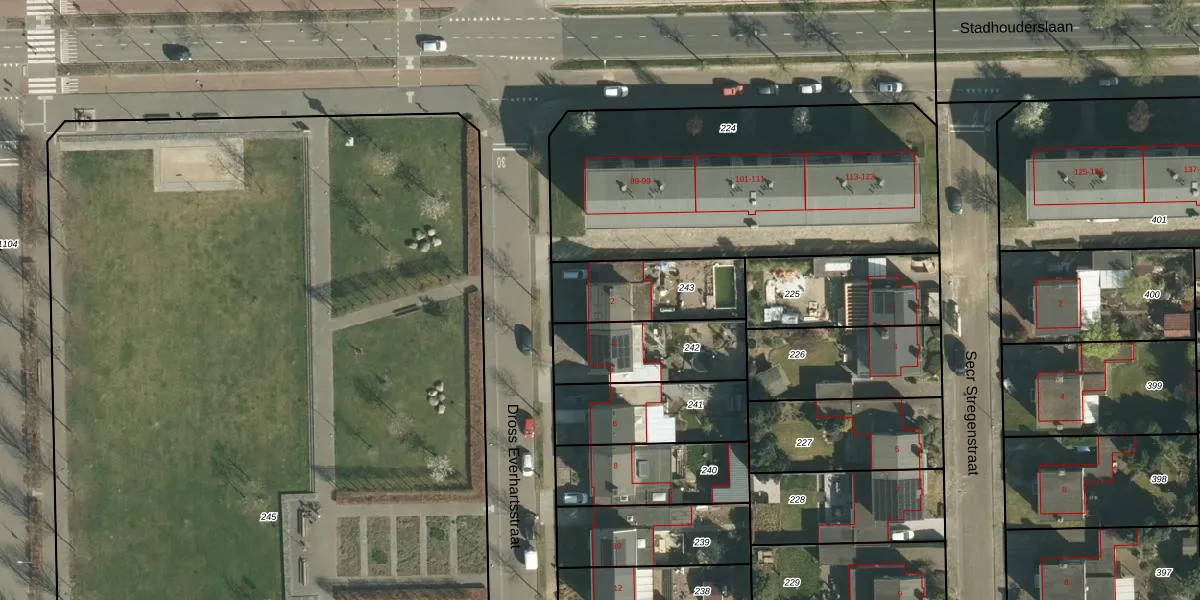 Gebruik de zoekbalk of klik op een perceel voor informatie over de adressen binnen dit perceel.