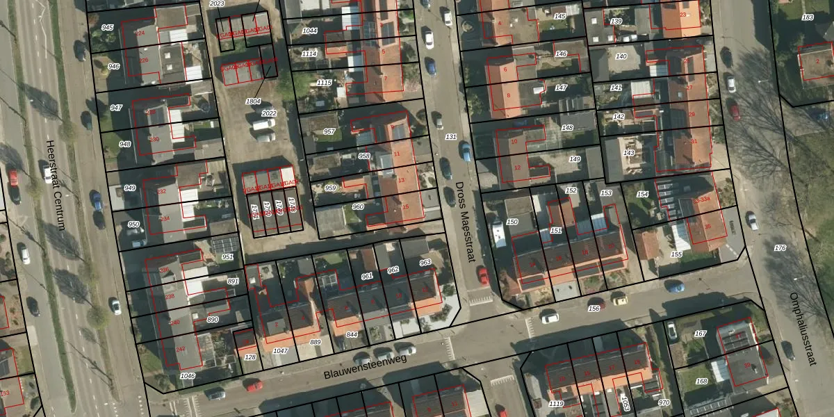 Dross Maesstraat 15 is gelegen op kadastraal perceel STE00G960. Deze kadastrale aanduiding is uniek en wordt gebruikt door het Kadaster om eigendomsrechten en andere zakelijke rechten vast te leggen. Het perceel maakt onderdeel uit van de kadastrale gemeente Stein.