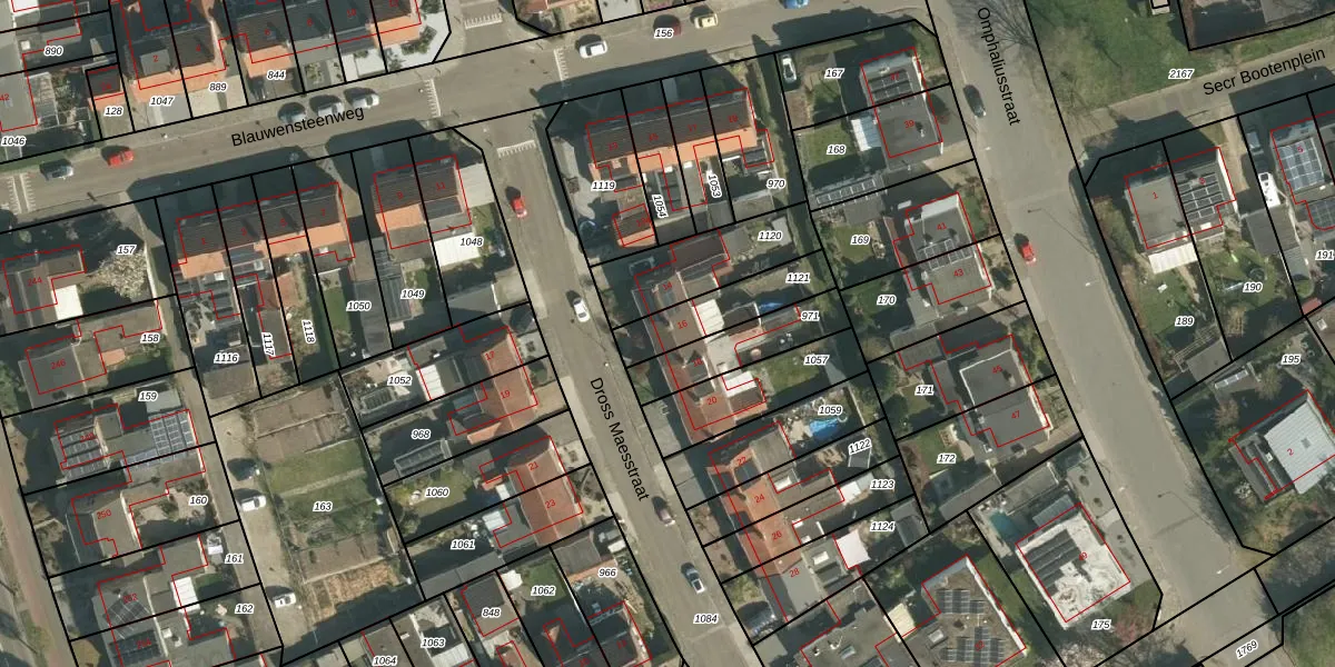 Dross Maesstraat 16 is gelegen op kadastraal perceel STE00G1121. Deze kadastrale aanduiding is uniek en wordt gebruikt door het Kadaster om eigendomsrechten en andere zakelijke rechten vast te leggen. Het perceel maakt onderdeel uit van de kadastrale gemeente Stein.
