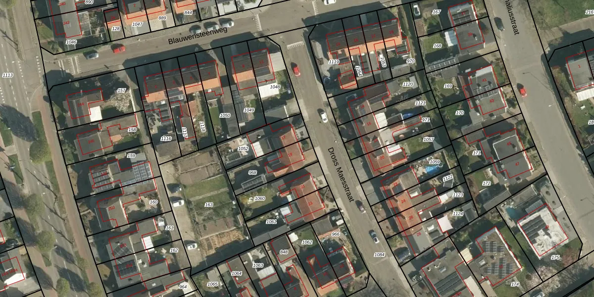 Dross Maesstraat 19 is gelegen op kadastraal perceel STE00G968. Deze kadastrale aanduiding is uniek en wordt gebruikt door het Kadaster om eigendomsrechten en andere zakelijke rechten vast te leggen. Het perceel maakt onderdeel uit van de kadastrale gemeente Stein.