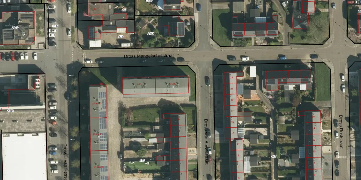 Dross Mangelschotstraat 1-GA68 is gelegen op kadastraal perceel STE00G223. Deze kadastrale aanduiding is uniek en wordt gebruikt door het Kadaster om eigendomsrechten en andere zakelijke rechten vast te leggen. Het perceel maakt onderdeel uit van de kadastrale gemeente Stein.