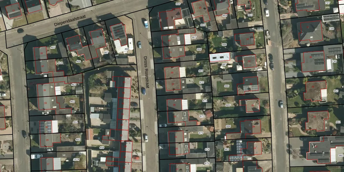 Dross Roststraat 37 is gelegen op kadastraal perceel STE00G870. Deze kadastrale aanduiding is uniek en wordt gebruikt door het Kadaster om eigendomsrechten en andere zakelijke rechten vast te leggen. Het perceel maakt onderdeel uit van de kadastrale gemeente Stein.