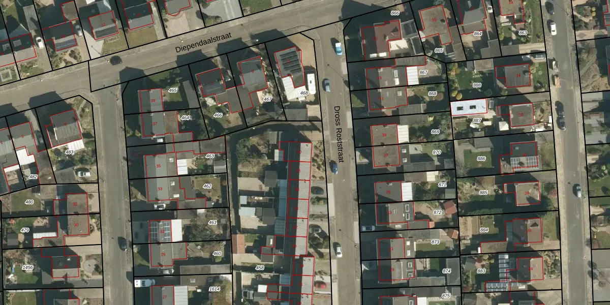 Dross Roststraat 40 is gelegen op kadastraal perceel STE00G458. Deze kadastrale aanduiding is uniek en wordt gebruikt door het Kadaster om eigendomsrechten en andere zakelijke rechten vast te leggen. Het perceel maakt onderdeel uit van de kadastrale gemeente Stein.
