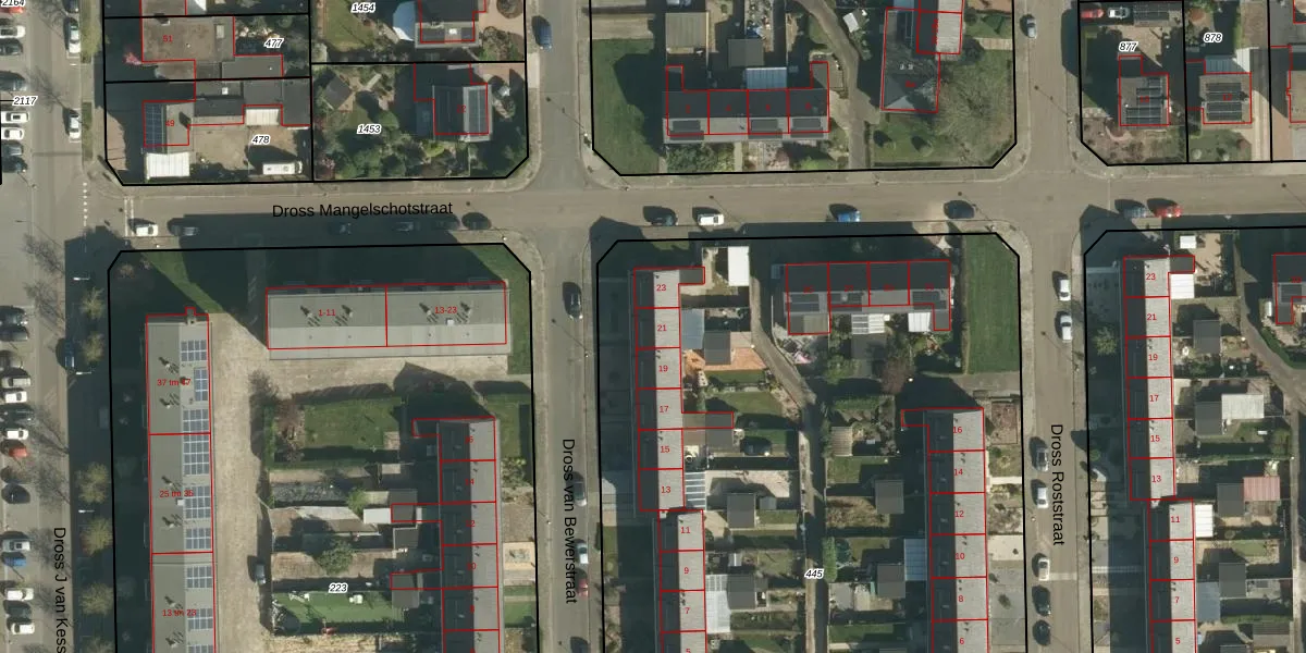 Dross van Bewerstraat 21 is gelegen op kadastraal perceel STE00G445. Deze kadastrale aanduiding is uniek en wordt gebruikt door het Kadaster om eigendomsrechten en andere zakelijke rechten vast te leggen. Het perceel maakt onderdeel uit van de kadastrale gemeente Stein.