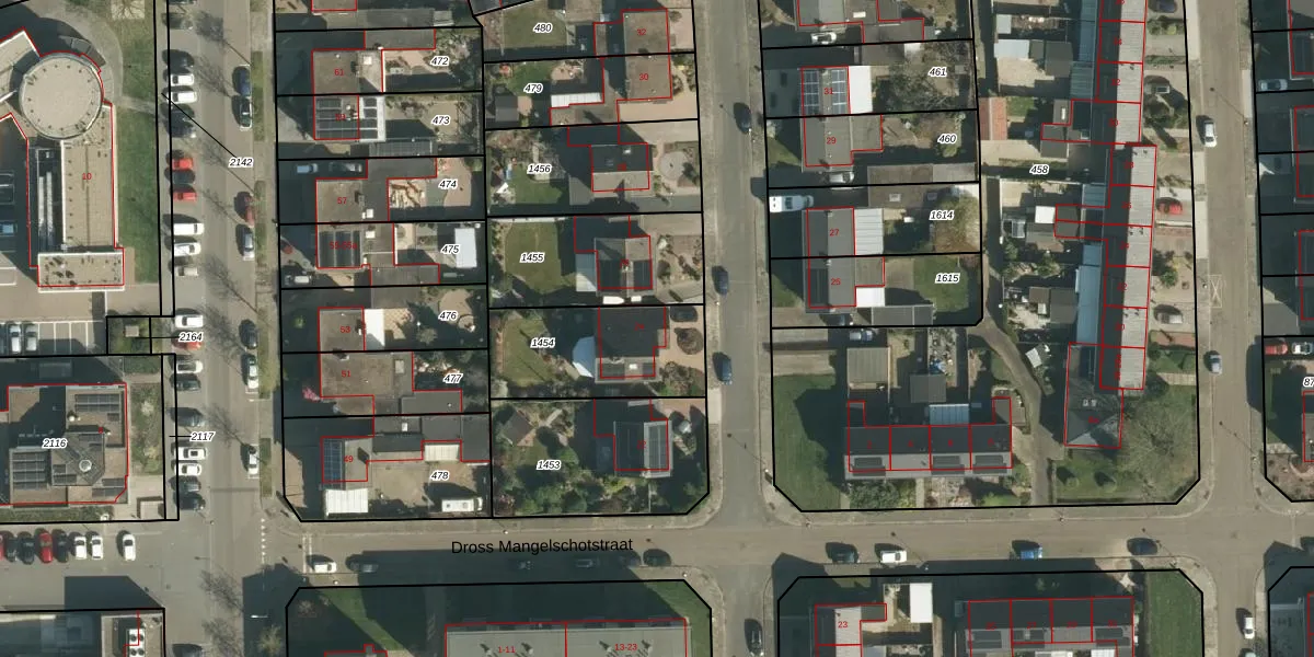 Gebruik de zoekbalk of klik op een perceel voor informatie over de adressen binnen dit perceel.